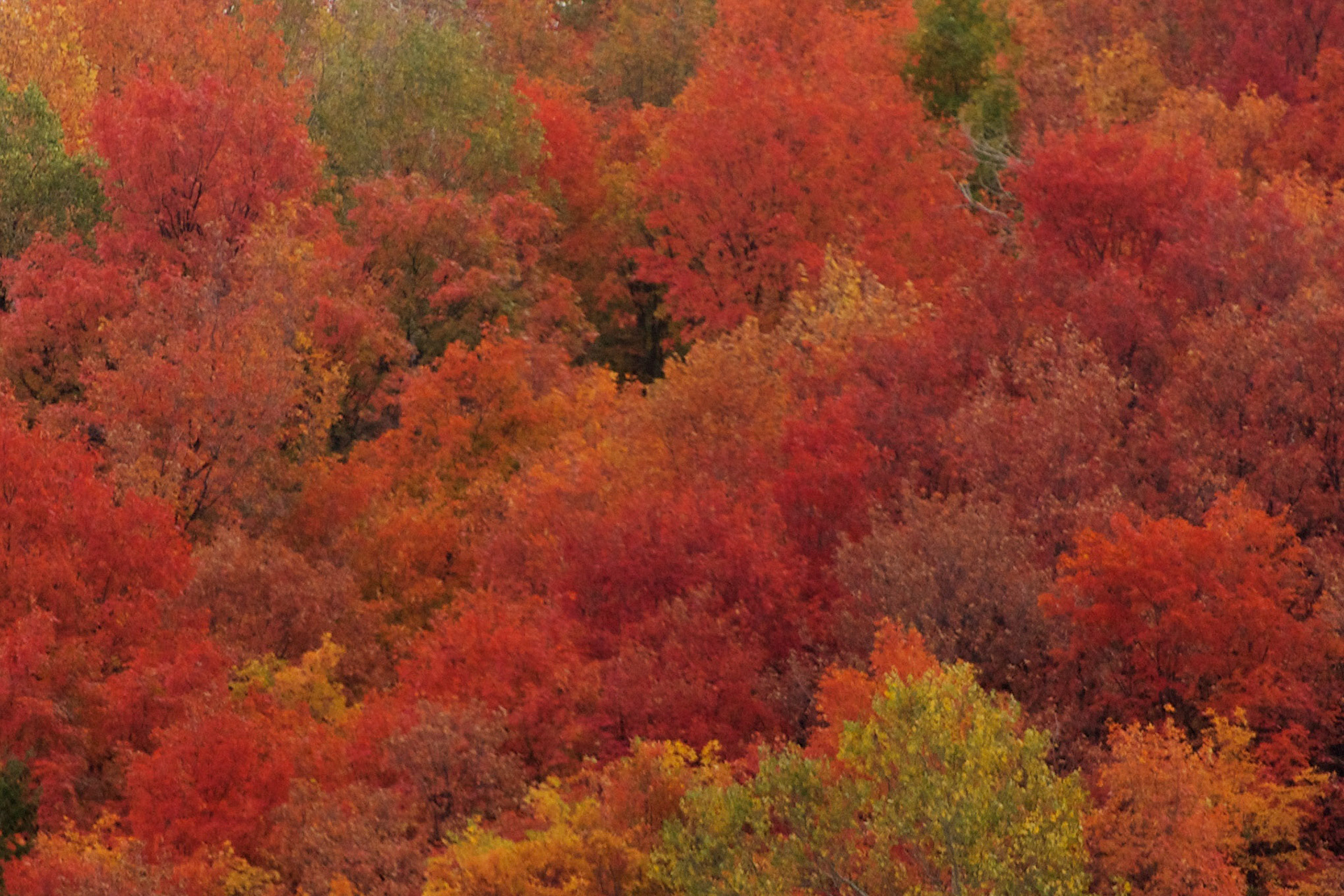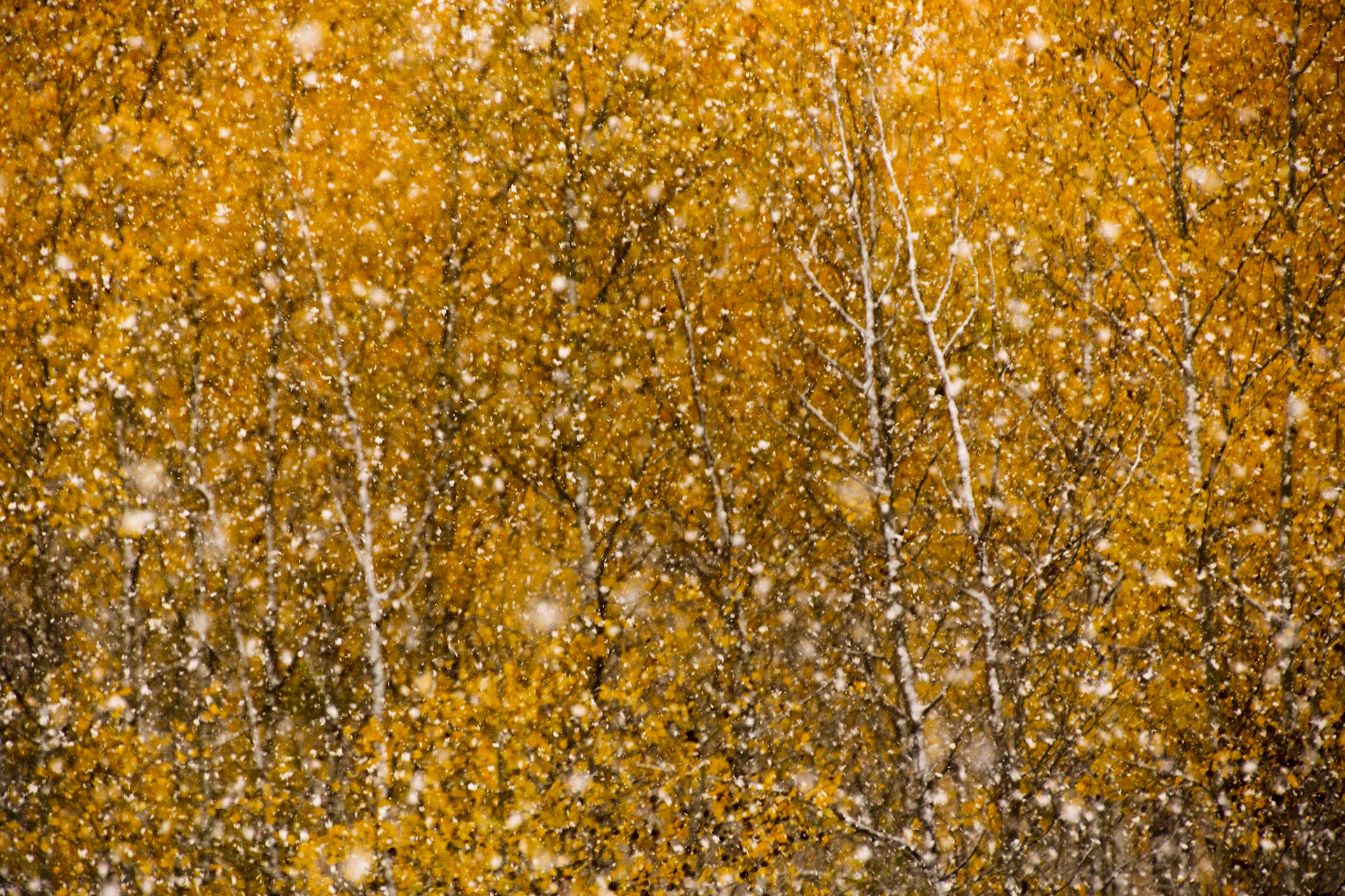 Snow falling in Salt Lake City coats bright red berries on a tree in a city park.