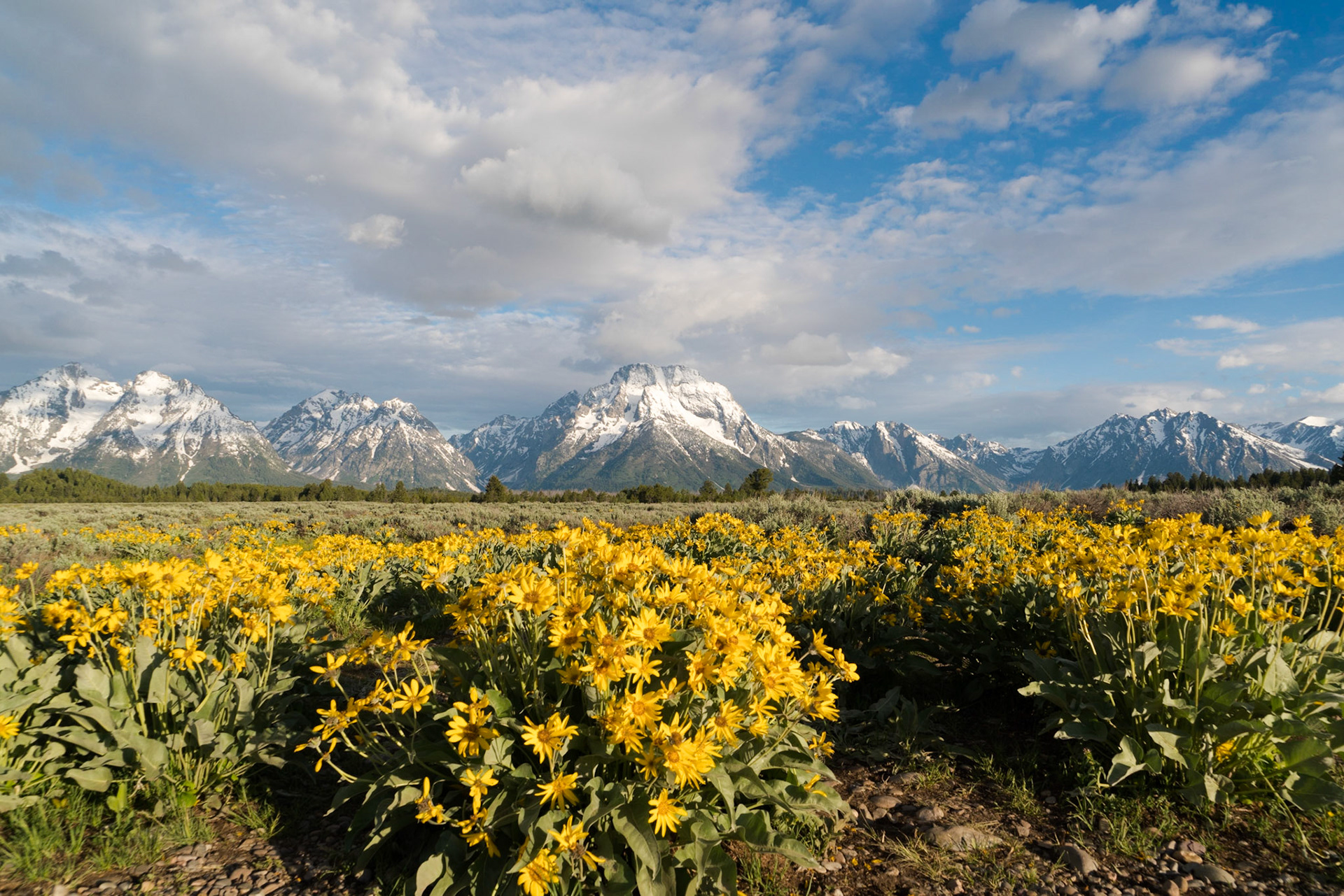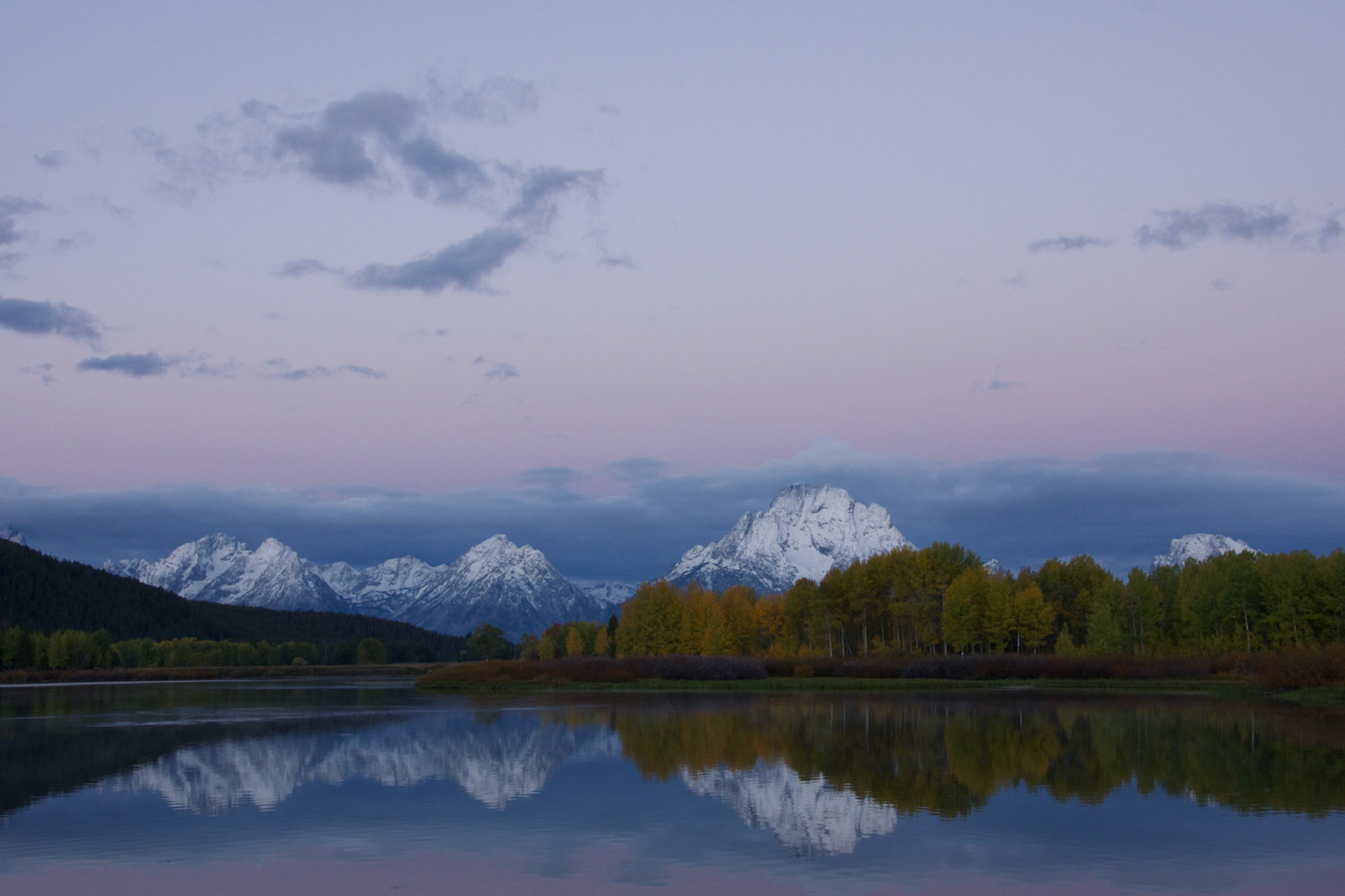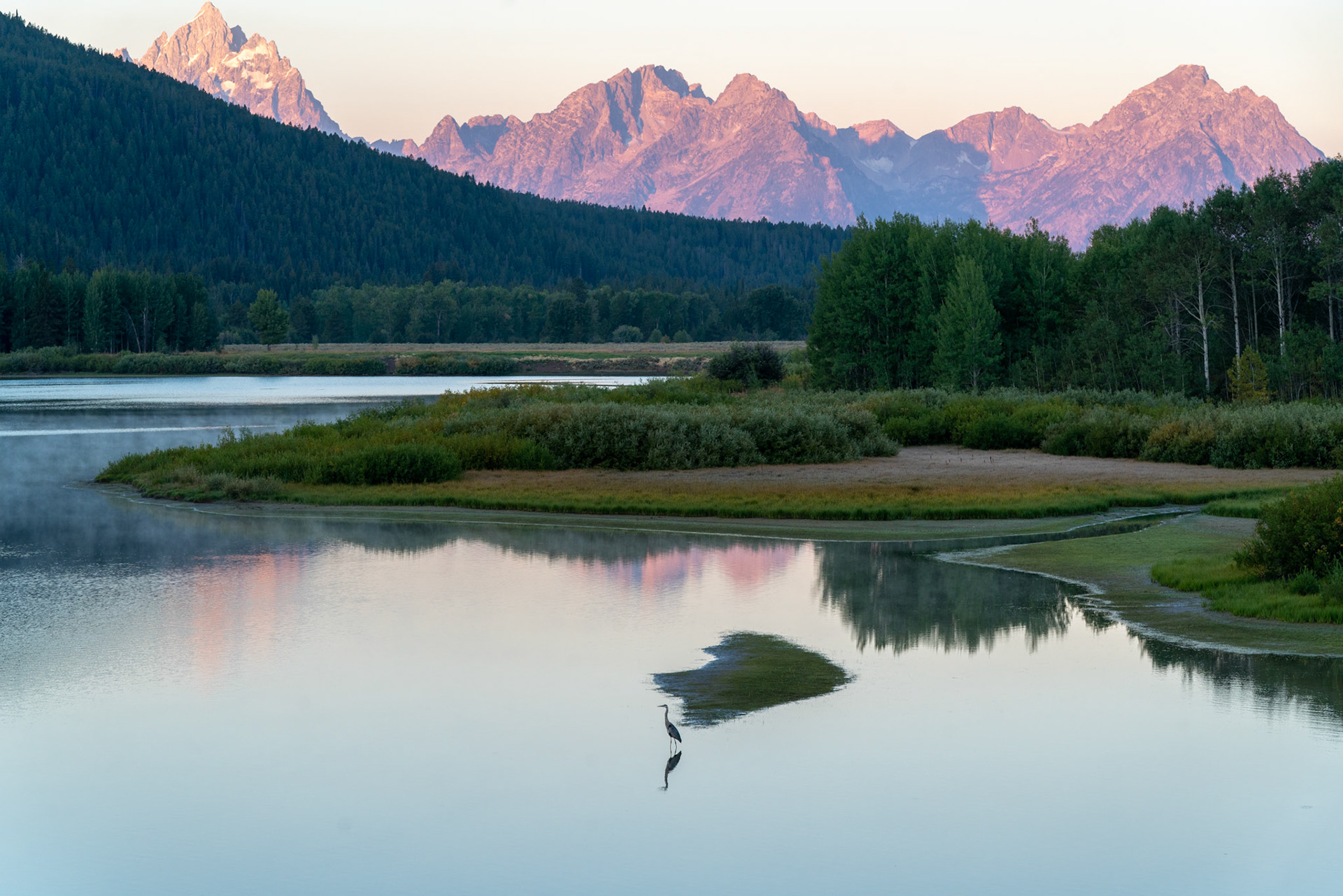 A dramatic double rainbow appears over Hayden Valley at sunrise.